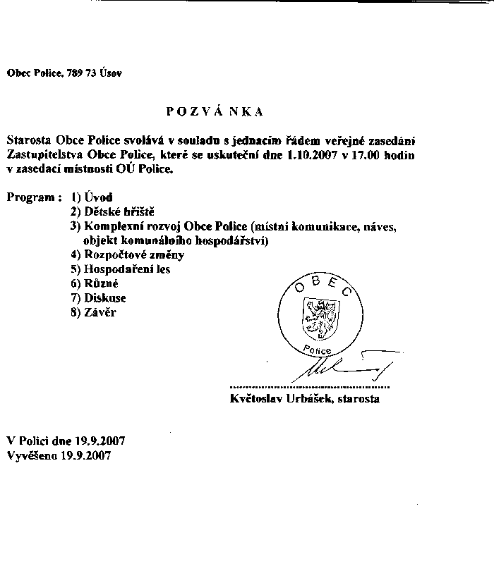Další zápisy ZO Police jsou na úřední desce a v jejím archivu odkaz: úřední deska